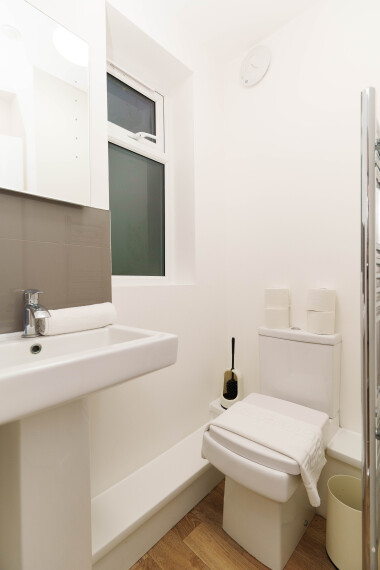 This 6 bedroom house over 3 floors is newly renovated to a high standard. We have taken great care to ensure all modern essentials are provided such as Smart TV'S, USB plugs and unlimited Wifi. The Lounge has a relaxing Sofa and Smart TV. The kitchen comes with the finest integrated appliances - microwave, fridge, oven, washing machine and dryer. The kitchen has basic cleaning items provided. There are 2 Bathrooms in the house, one of them attached to bedroom 2 and an addtional WC downstairs.