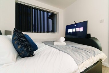 There are Smart TV''s in some of the bedrooms. Free Wi-Fi throughout and modern décor, with everything you need for your stay. The kitchen has a breakfast bar and comes with the finest integrated appliances - microwave, fridge, oven, washing machine and dryer. The kitchen has basic cleaning items provided. There are 2 Bathrooms in the house, one of them attached to bedroom 2, one family bathroom and an addtional WC downstairs.The Bathrooms come with basic amenities such as shower gels, towels and toiletries.